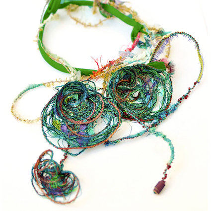 Là le cuir, la soie, ces matières qui portent une présence sensuelle, charnelle. Je nourrit mon imaginaire avec ce que me donne la nature, ces espaces de liberté qui nous entourent, cette terre qui porte la vie . Je m’imprègne de ses couleurs, de sa lumière. La nature c’est aussi la substance de l’être, ce qui nourrit l’esprit et le corps. Bien des mots qui peuvent paraître différents, pourtant ils construisent et soutiennent mon travail. Je n’y vois pas de différence, j’y vois plutôt des liens.