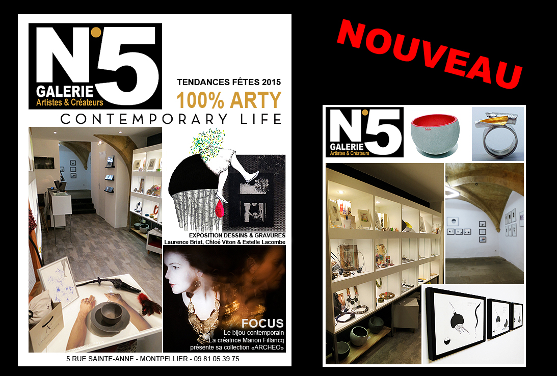 Image précédente Image suivante N°5 GALERIE – créateurs et artistes – 5 rue Sainte Anne – Montpellier N°5 GALERIE – créateurs et artistes – 5 rue Sainte Anne – Montpellier