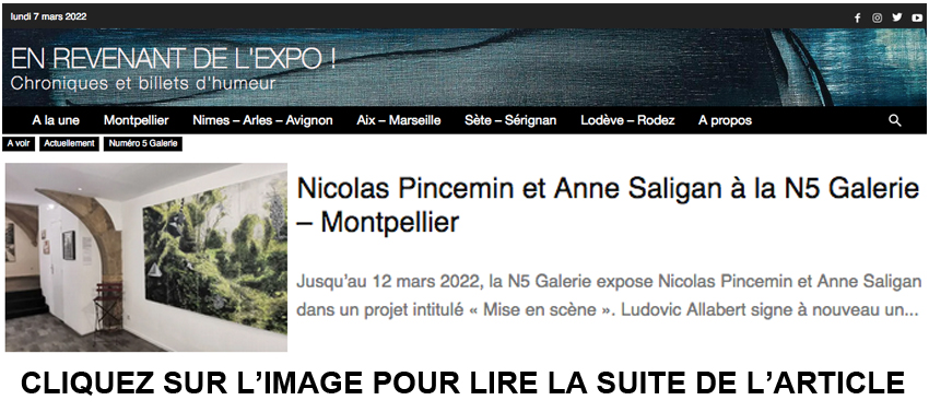 La N5 Galerie vous propose une incursion dans des interprétations mentales du paysage, sujet cher à tant de créateurs d’hier et d’aujourd’hui. Reconnue officiellement comme un genre artistique à partir 16e siècle, le paysage a emprunté de multiples courants (classique, romantique, réaliste, impressionniste, …) jusqu’à s’affranchir des codes de la représentation. Cadre idéal pour la narration, la réflexion personnelle de l’artiste dans ses œuvres est l’une des caractéristiques singulières de ce mouvement perpétuellement réinterprété. Faisant suite à l’exposition éponyme présentée à la galerie en 2020 ( https://n5galeriemontpellier.com/2020/09/16/du-paysage/ ), nous vous invitons aujourd’hui à parcourir les univers de Guiome David, Florence Mirol, Dominique Nicolas et Patricia Stheeman.